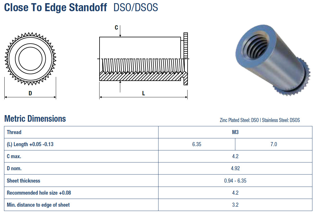 Besajtolható menetes távtartó, élközeli szereléshez M3x7 horganyzott acél