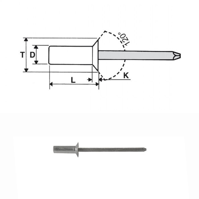 Popszegecs 3,2x12 süllyesztett fejű alu/acél, átfogás 5,5 - 7,5
