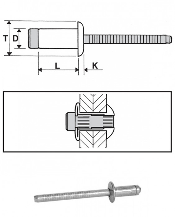 Popszegecs 3,2x7 dombor fejű acél/acél, átfogás 1-3, nyitott