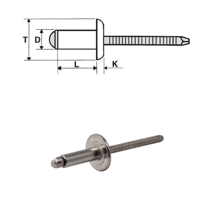 Popszegecs 4x6 nagyfejű A2/A2, átfogás 1 - 2