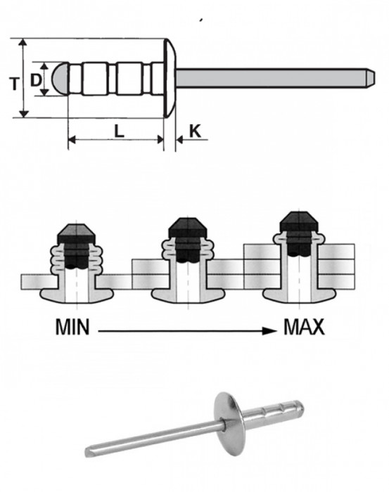 Popszegecs 4x9,8 extra nagyfejű alu/acél, MULTIFIX, átfogás 1,2 - 6,3