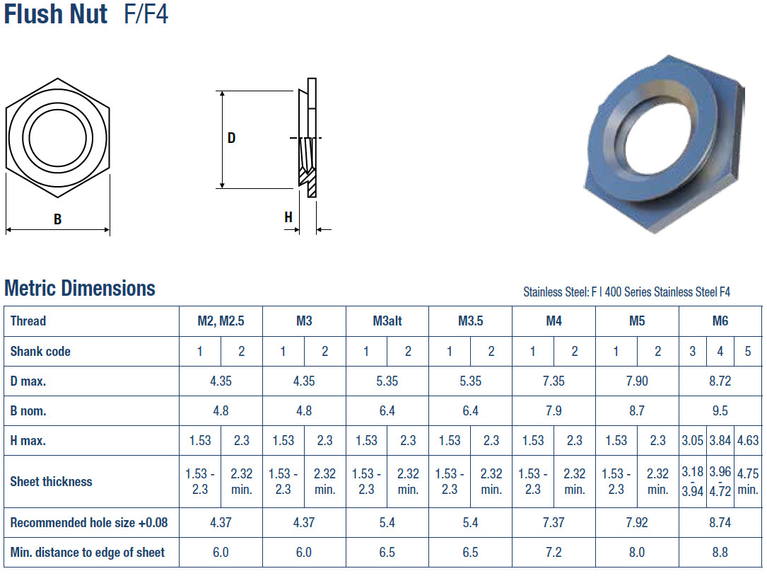 Süllyesztett besajtolható rozsdamentes anya M2,5-2