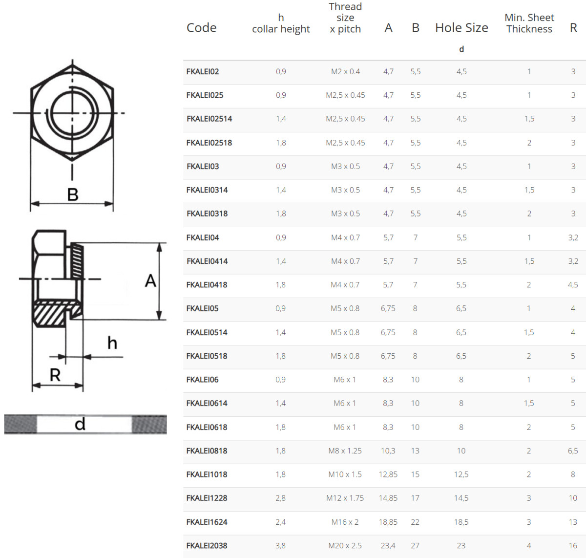 M6 KALEI anya horganyzott acél ; min. lemezvastagság: 1,5mm ; 8mm furathoz